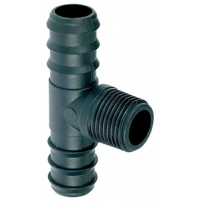 Trójnik marki RAMP z gwintem zewnętrznym 1/2 cala (fi20) umożliwiający budowę podziemnego systemu nawadniającego.